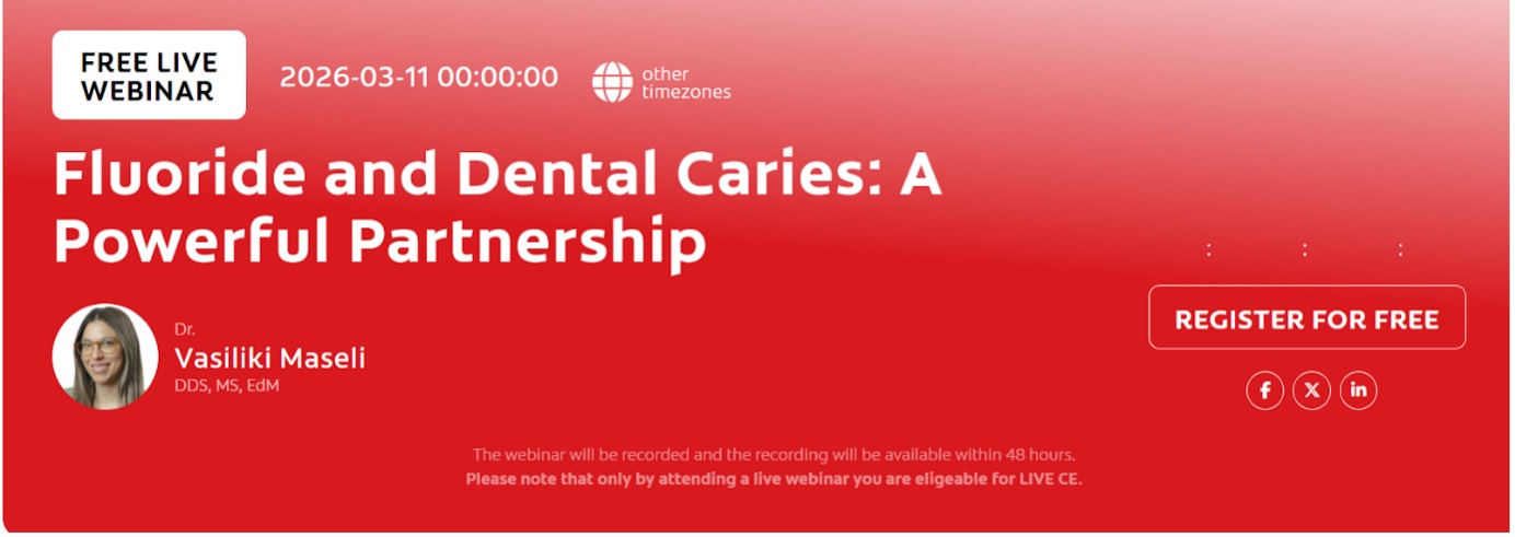 HomeCoursesFLUORIDE & DENTAL CARIES : A POWERFUL PARTNERSHIP FLUORIDE & DENTAL CARIES : A POWERFUL PARTNERSHIP Course Details Subject: FLUORIDE & DENTAL CARIES : A POWERFUL PARTNERSHIP Date: 11/03/2026 Time: 5:30 AM Faculty: Dr.Vasiliki Maseli DDS, MS, EdM Venue: ONLINE 📄 Download Course Brochure